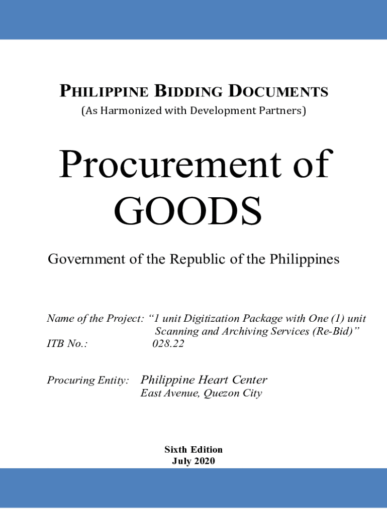 PHILIPPINE BIDDING DOCUMENTS (As Harmonized with Development Partners)Procurement of GOODS Government of the Republic of the PhilippinesName of the Project: 1 unit Digitization Package with One (1)