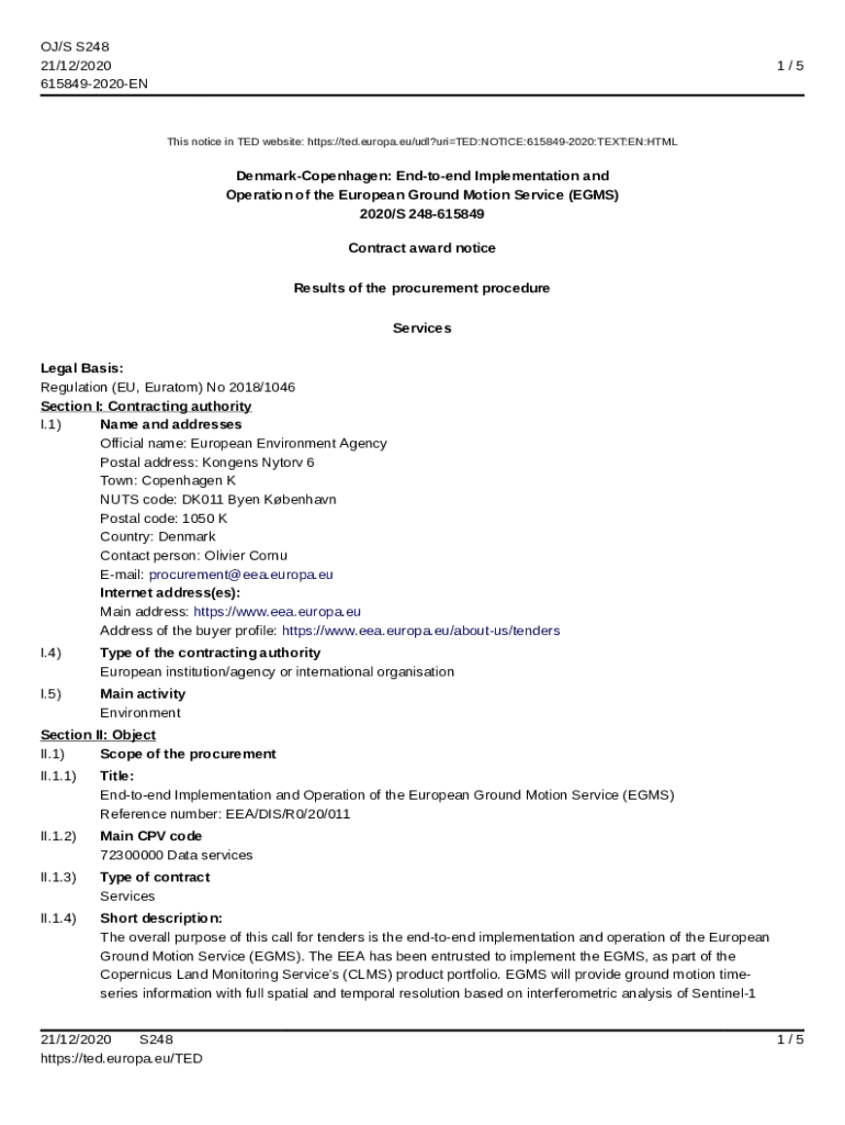 OJ/S S248 21/12/2020 6158492020EN1/5This notice in TED website: https://ted.europa.eu/udl?uriTED:NOTICE:6158492020:TEXT:EN:HTMLDenmarkCopenhagen: Ended Implementation and Operation of the European