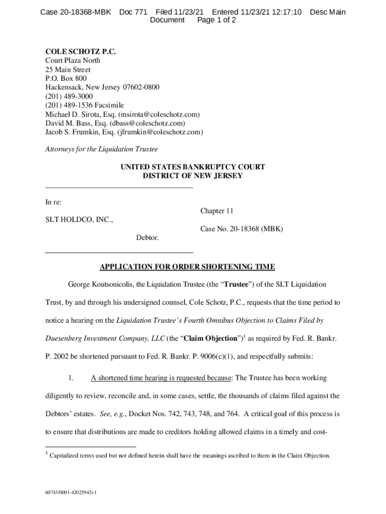 Case 2018368MBKDoc 771Filed 11/23/21 Entered 11/23/21 12:17:10 Document Page 1 of 2Desc Manhole SCHATZ P.C. Court Plaza North 25 Main Street P.O. Box 800 Hackensack, New Jersey 076020800 (201) 4893000