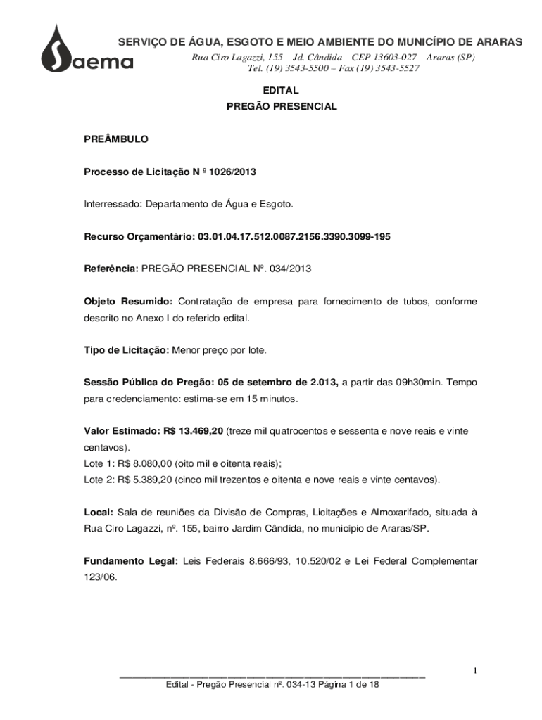 Obtenha o gratuito Objeto Resumido: Contratao de empresa para fornecimento de tubos, conforme