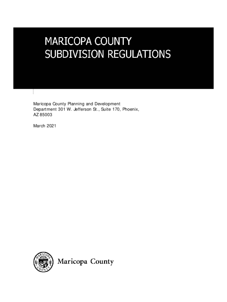 Maricopa County Planning and Development Department 301 W. Jefferson St., Suite 170, Phoenix, AZ 85003 March 2021PREFACE CHAPTER 1 TITLE, AUTHORITY, JURISDICTION, PURPOSE & DEFINITIONS Section Page
