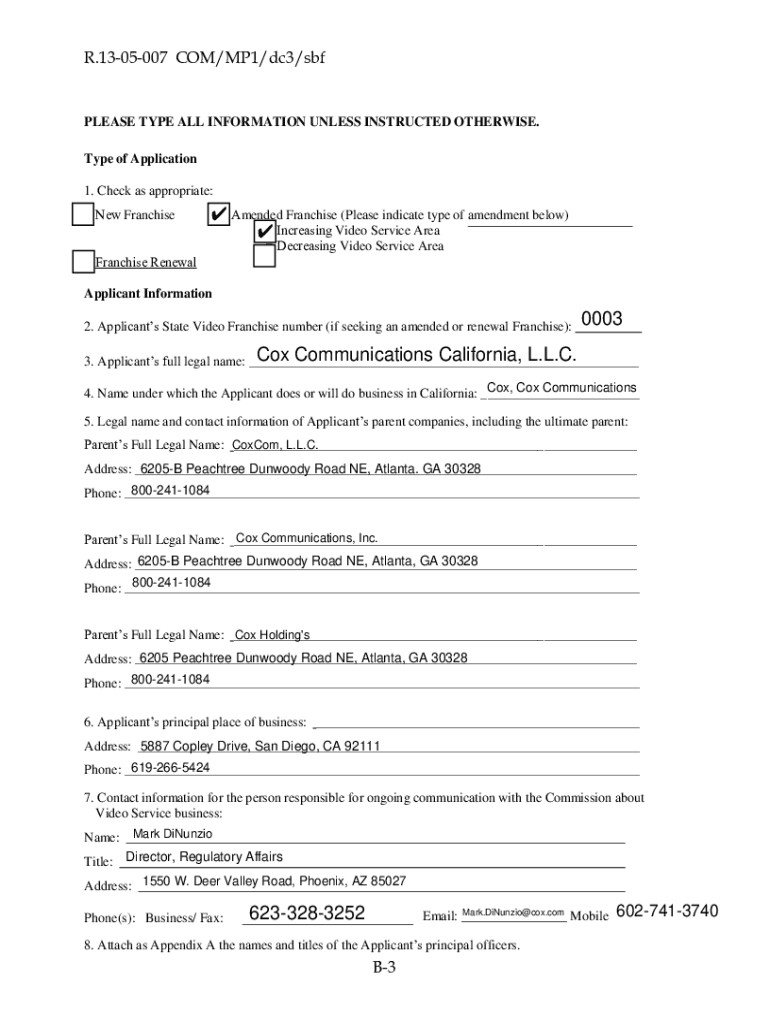 R.1305007 COM/MP1/dc3/application FOR A NEW, AMENDED OR RENEWAL CALIFORNIA STATE VIDEO FRANCHISE CALIFORNIA PUBLIC UTILITIES COMMISSIONDefinitions for the purposes of this Application: A. Access means
