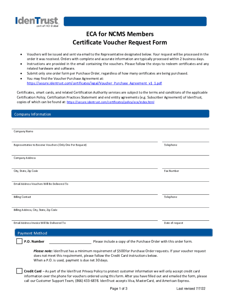 ECA for CMS Members Certificate Voucher Request Form Vouchers will be issued and sent via email to the Representative designated below. Your request will be processed in the order it was received.