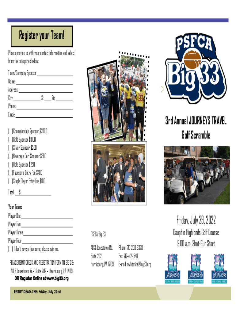 Register your Team! Please provide us with your contact information and select from the categories below: Team/Company Sponsor Name: Address: City Phone: Email: [[[[[[[PS FCA Big 33StZip3rd Annual