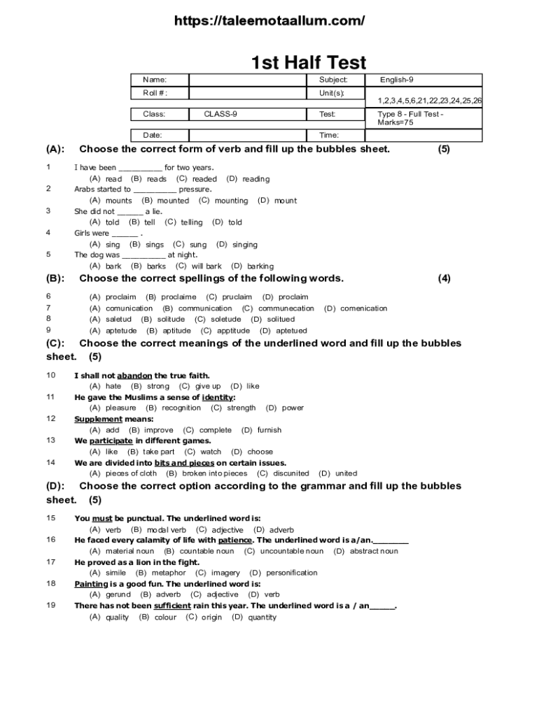 PDF Watermark Remover DEMO : Purchase from www.PDFWatermarkRemover.com to remove the watermarkhttps://taleemotaallum.com/SCHOOL/ACADEMY NAME (SAMPLE TEST)1st Half Headdress Name:Subject:Roll # :Unit(s):Class:CLASS9Test:Date:(A):