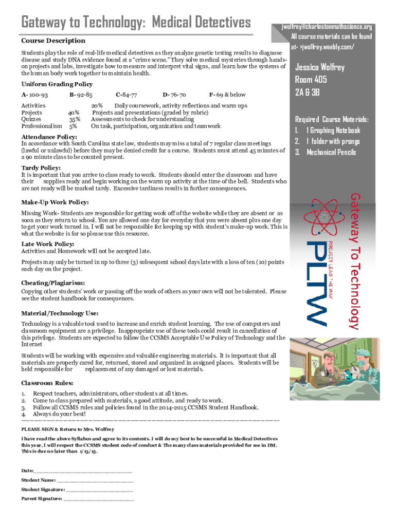 Gateway to Technology: Medical Detectives Course Descriptionjwolfrey@charlestonmathscience.org All course materials can be found at jwolfrey.weebly.com/Students play the role of real life medical