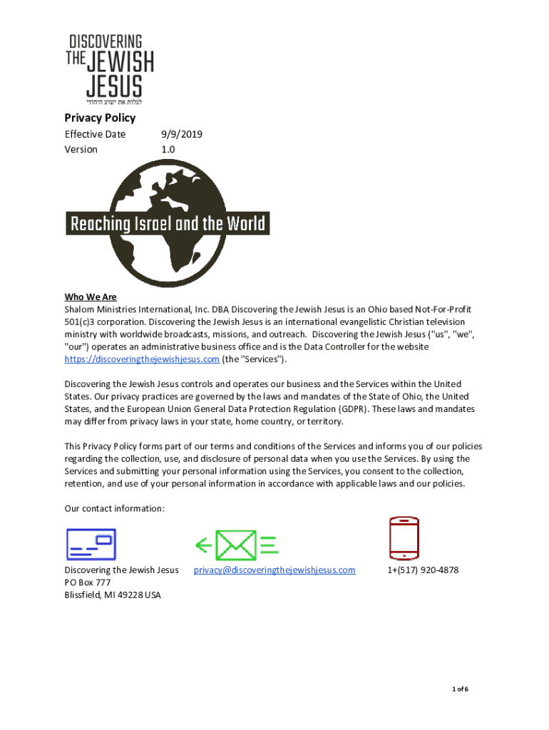 Shalom Ministries International, Inc. DBA Discovering the Jewish Jesus is an Ohio based NotForProfit
