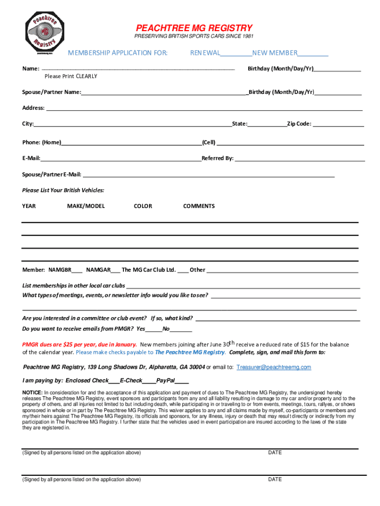 PRESERVING BRITISH SPORTS CARS SINCE 1981MEMBERSHIP APPLICATION FOR:RENEWABLE Membrane: ___