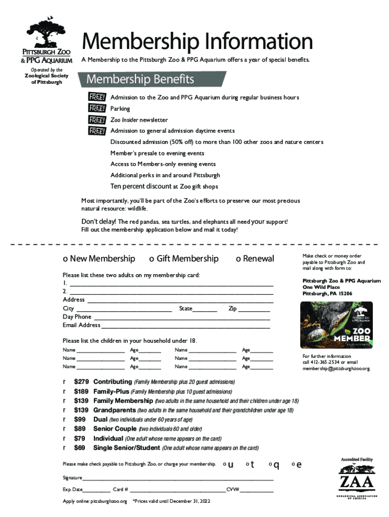 Membership Information A Membership to the Pittsburgh Zoo & RPG Aquarium offers a year of special benefits. Operated by the Zoological Society of PittsburghMembership BenefitsAdmission to the Zoo