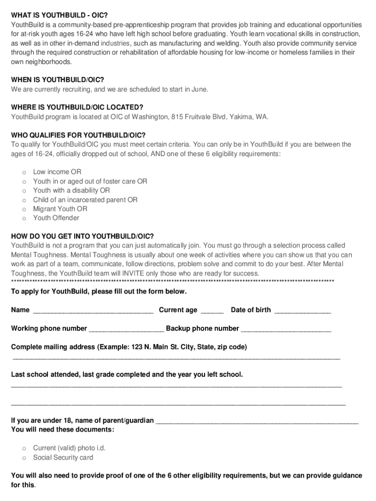 WHAT IS YOUTHFUL OIC? Youthful is a community based apprenticeship program that provides job training and educational opportunities for at risk youth ages 1624 who have left high school before graduating.