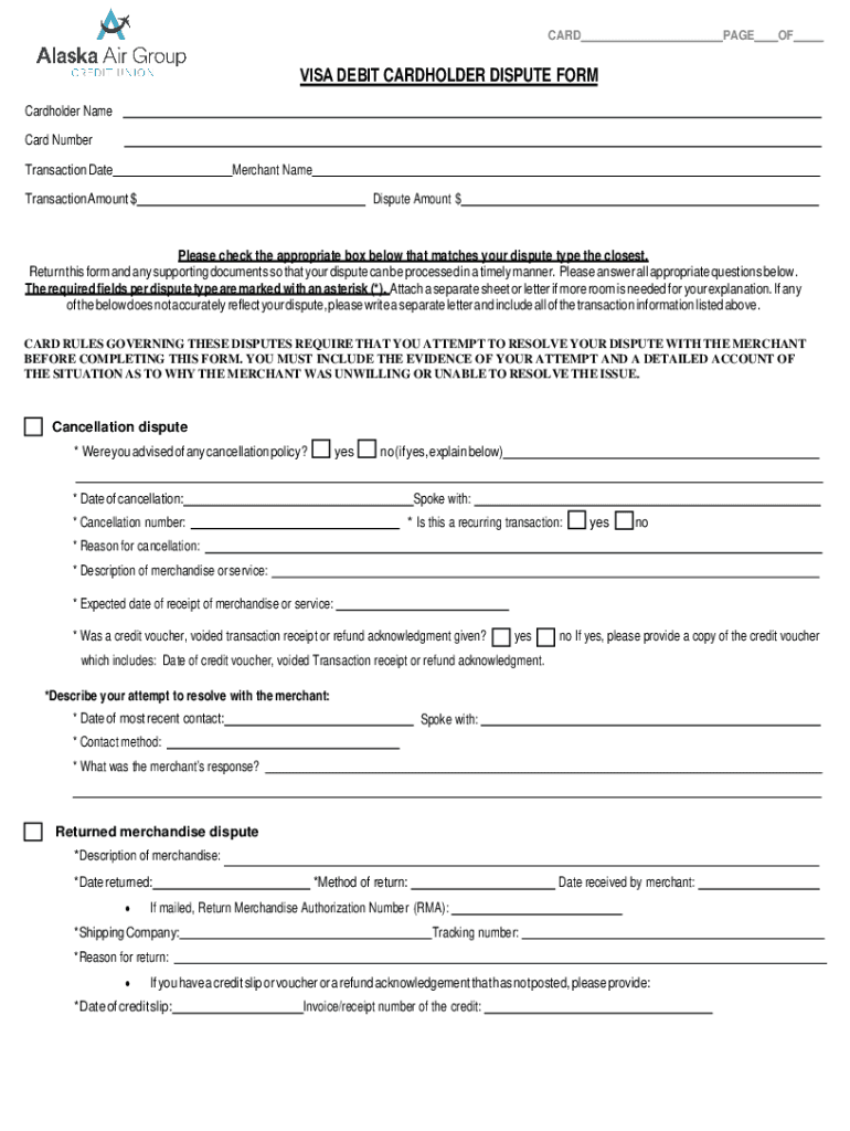 Get the free visa debit/credit card cardholder dispute form instructions ...