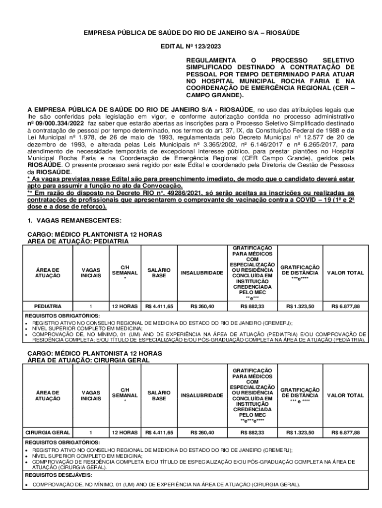 EMPRESS PBL ICA DE SADE DO RIO DE JANEIRO S/A ROSADO