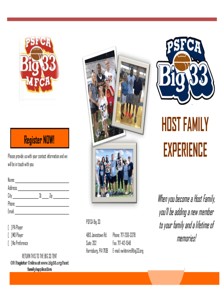 HOST FAMILY EXPERIENCERegister NOW! Please provide us with your contact information, and we will be in touch with you: Name: Address: City Phone: Email:Strip[ ] PA Player [ ] MD Player [ ] No Preference