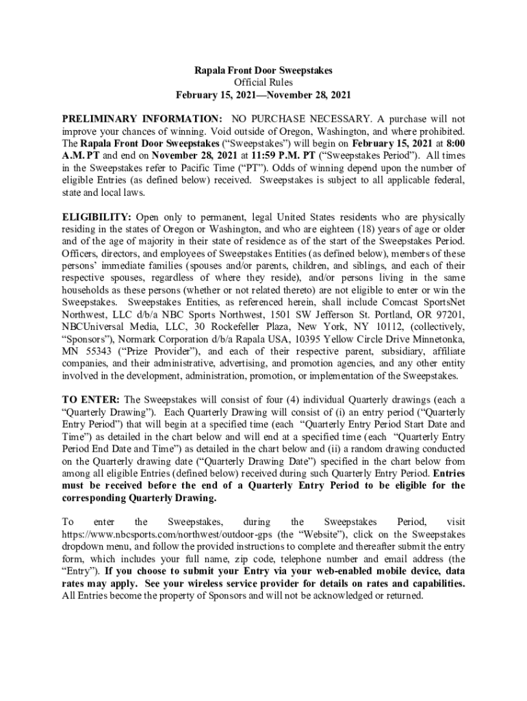 Get the free NBC Sports Northwest - Rapala Front Door Sweepstakes Official Rules(1-11-21).doc