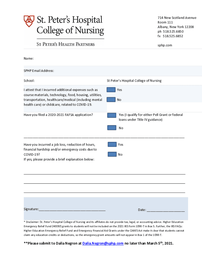 714 New Scotland Avenue Room 111 Albany, New York 12208 pH 518.525.6850 FX 518.525.6852 SPHP.compare: SPHP Email Address: School: I attest that I incurred additional expenses such as course materials,