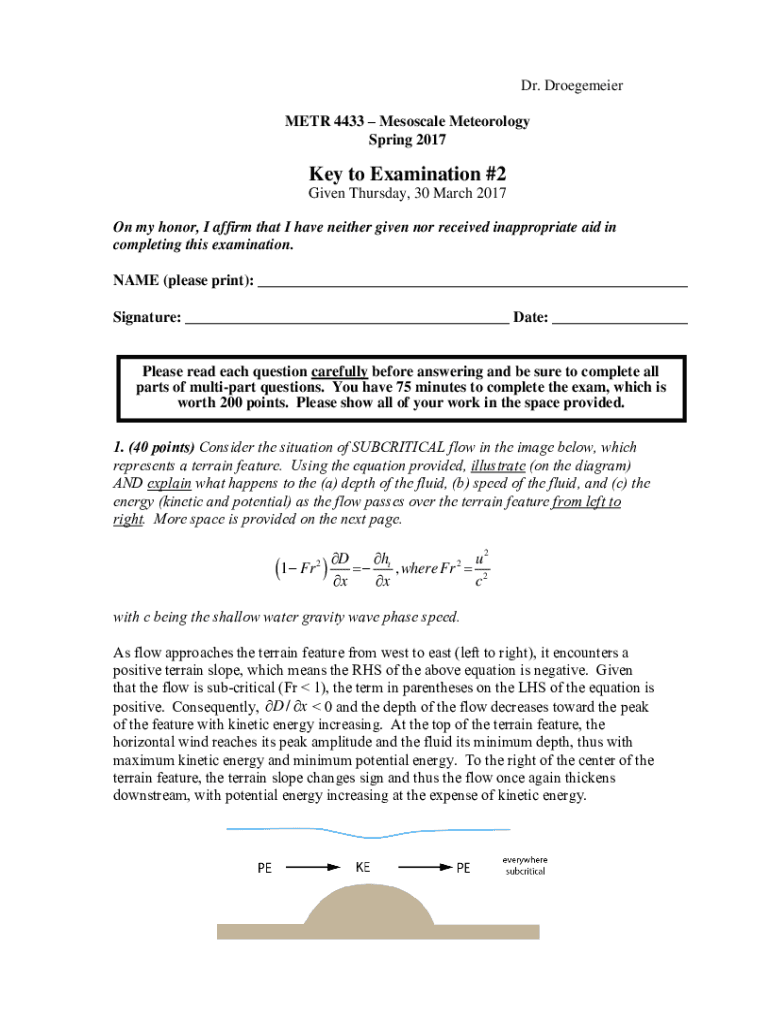 Dr. Droegemeier MET 4433 Message Meteorology Spring 2017Key to Examination #2 Given Thursday, 30 March 2017 On my honor, I affirm that I have neither given nor received inappropriate aid in completing
