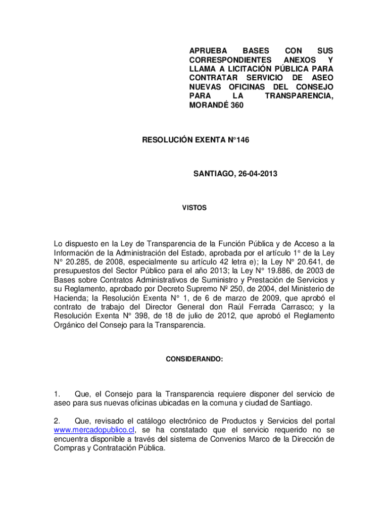 ARUBA BASES CON SUS CORRESPONDENTS ALEXIS Y LLAMA A LIMITATION PBL ICA PARA CONTRACTOR SERVICE DE AEO CUEVAS OFFICIAL DEL CONSENT PARA LA TRANSPARENCY, MORAN 360RESOLUCIN EVENT N146SANTIAGO, 26042013VISTOSLo
