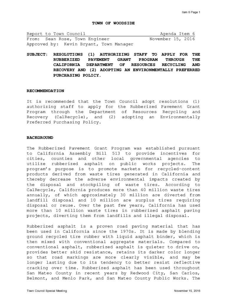 Get the free TOWN OF WOODSIDE Report to Town Council Agenda Item 6 ...