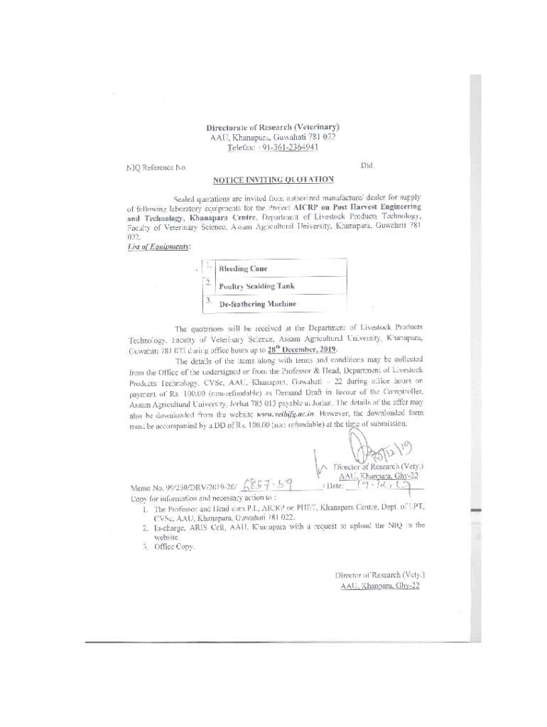 The purpose of niq- poultry processing equipments is to ensure that poultry processing establishments are using safe and efficient equipment.