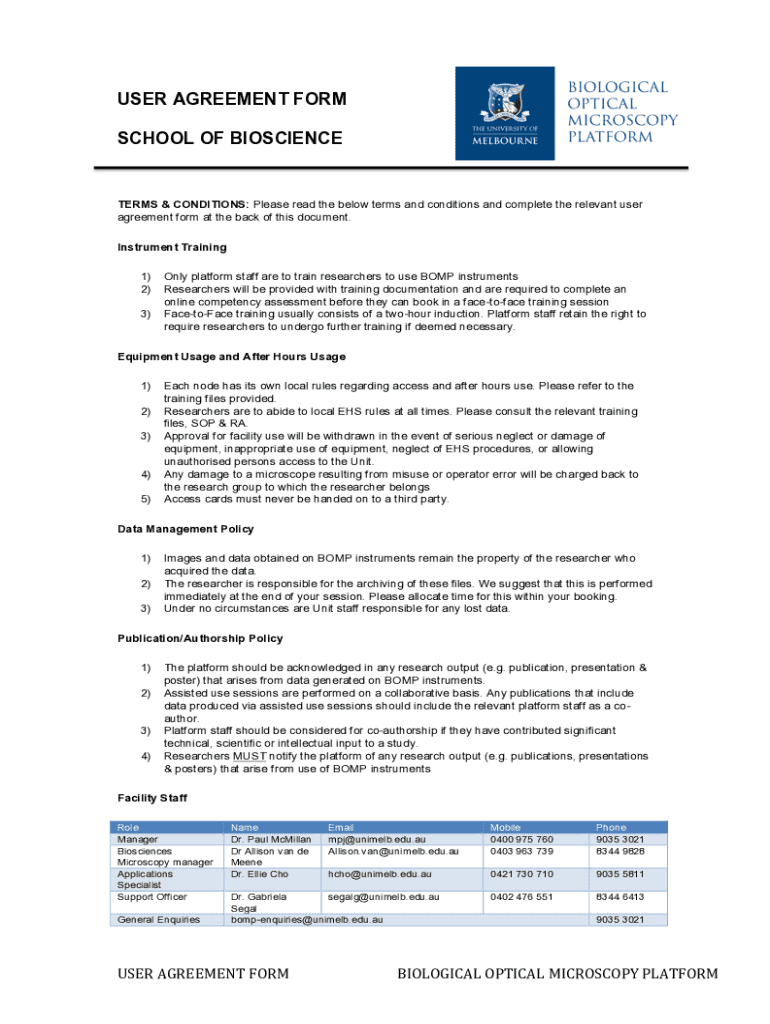 Get the free USER AGREEMENT FORM SCHOOL OF BIOSCIENCE