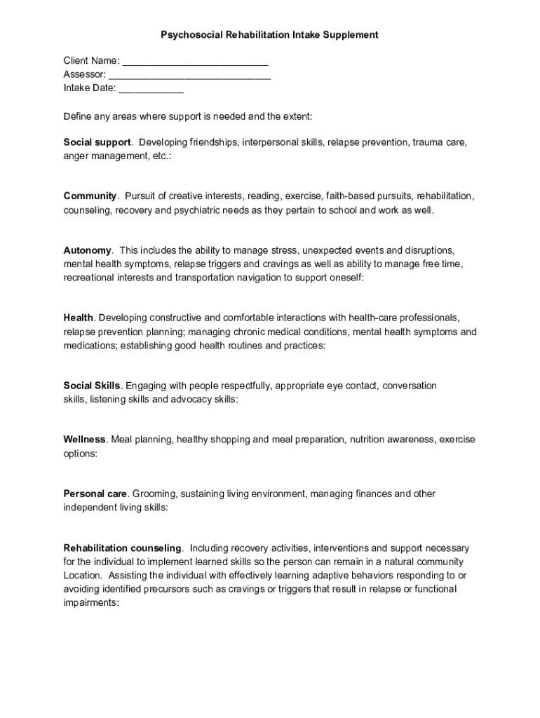 Get the free Psychosocial Rehabilitation Intake Supplement Client Name