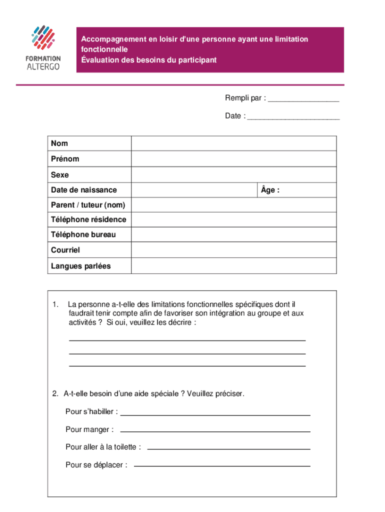Obtenir le gratuit Nom Prnom Sexe Date de naissance ge : Parent / tuteur ...