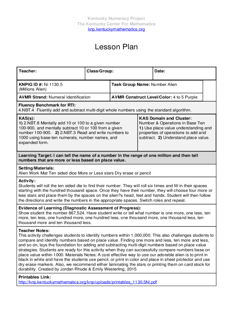 Get the free KNPIG ID #: Ni 1130 - knp kentuckymathematics
