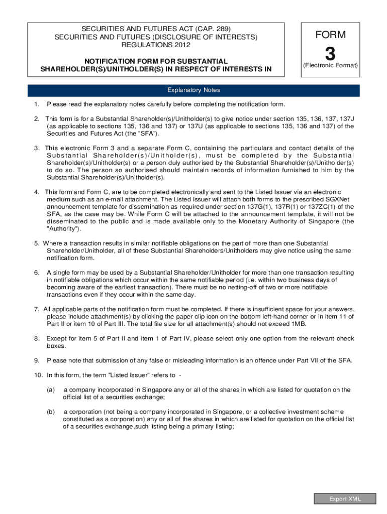 SECURITIES AND FUTURES ACT (CAP. 289) SECURITIES AND FUTURES (DISCLOSURE OF INTERESTS) REGULATIONS 2012FORMNOTIFICATION FORM FOR SUBSTANTIAL SHAREHOLDER(S)/UPHOLDER(S) IN RESPECT OF INTERESTS IN(Electronic