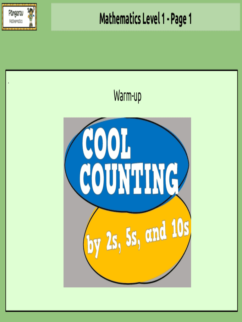 Mathematics Level 1-Page 1. WarmupMathematics Level 1-Page 1 Achievement Objective Know groupings with ve, within ten, and with ten. SKI NZ Mathews are learning to Give many names for the same number