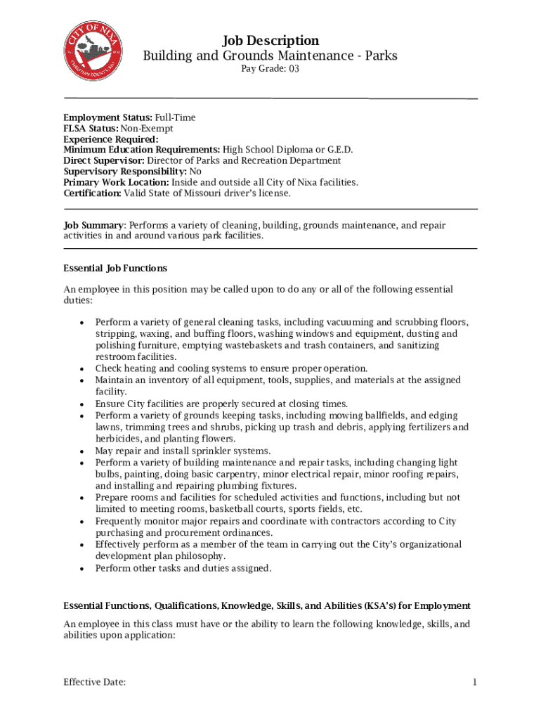 Get the free Building and Grounds Maintenance-Parks - City of Nixa, MO