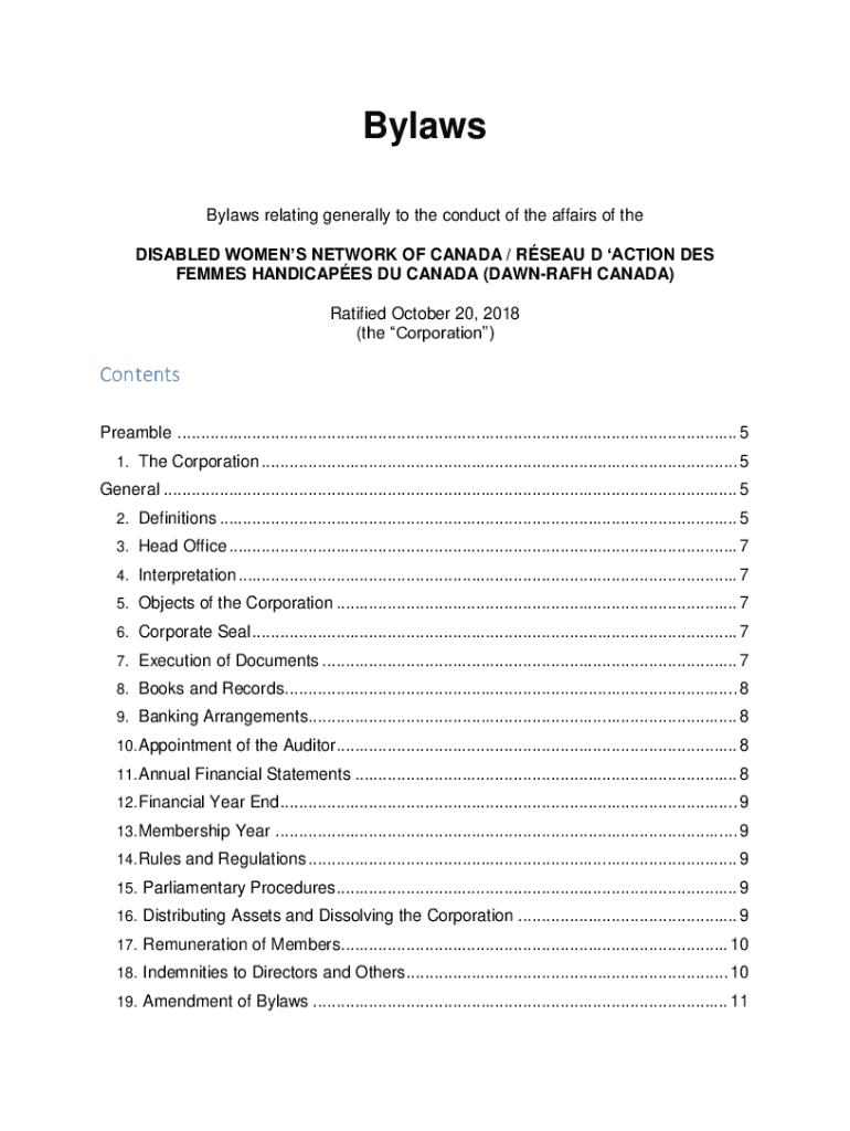 Bylaws relating generally to the conduct of the affairs of the DISABLED WOMEN NETWORK OF CANADA / ROSEAU D ACTION DES FEM MES HANDICAPS DU CANADA (DOWNDRAFT CANADA) Ratified October 20, 2018 (the