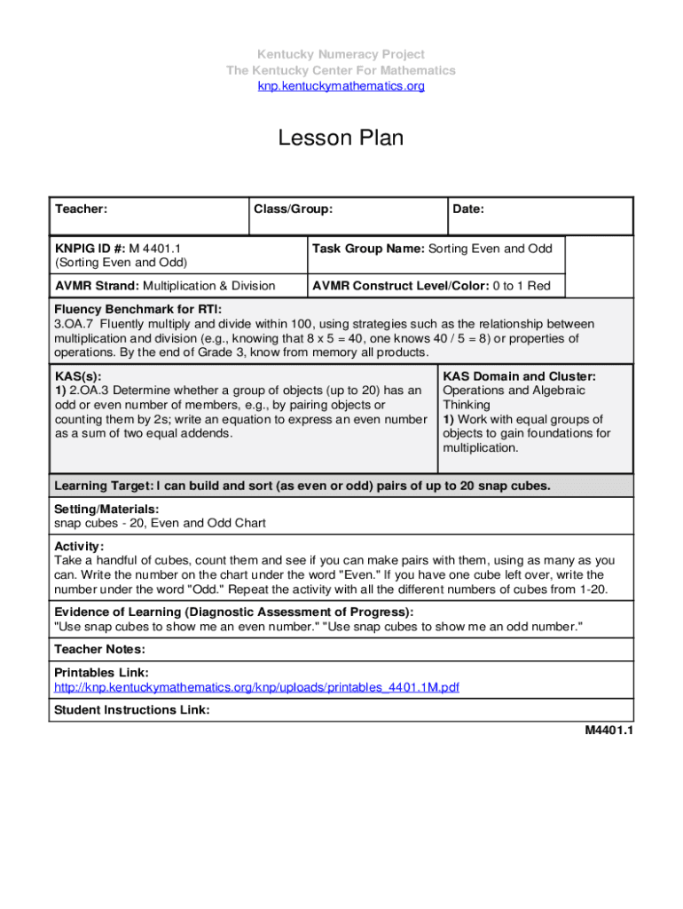 Get the free KNPIG ID #: M 4401 - knp kentuckymathematics