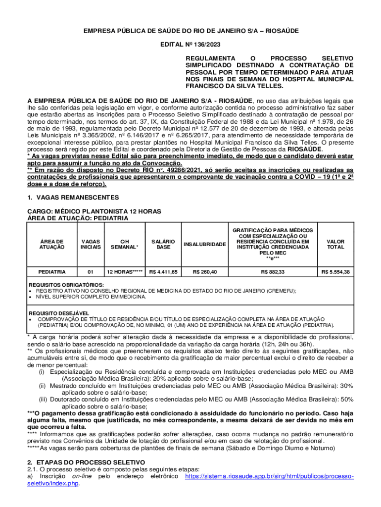 EMPRESS PBL ICA DE SADE DO RIO DE JANEIRO S/A ROSADO