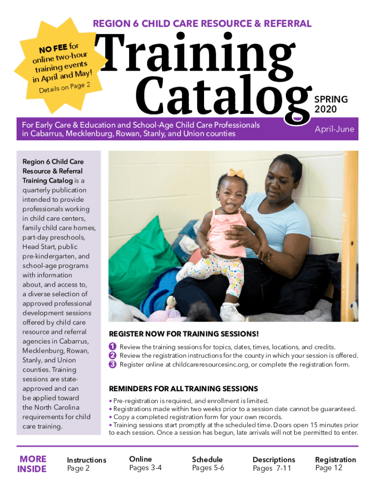 REGION 6 CHILD CARE RESOURCE & REFERRAL for NO FEE hour online TW vents training end May! In April an n Page 2Details training Cataloger Early Care & Education and Schoolmate Child Care Professionals