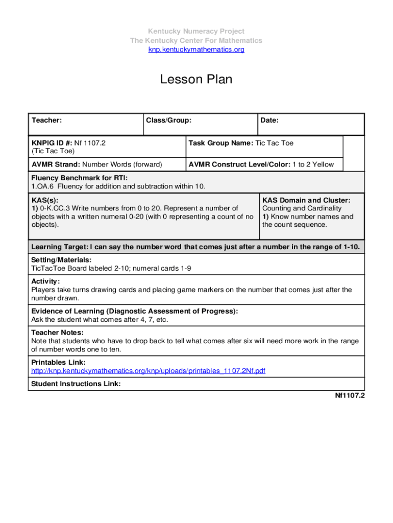 Get the free (Tic Tac Toe) - knp kentuckymathematics