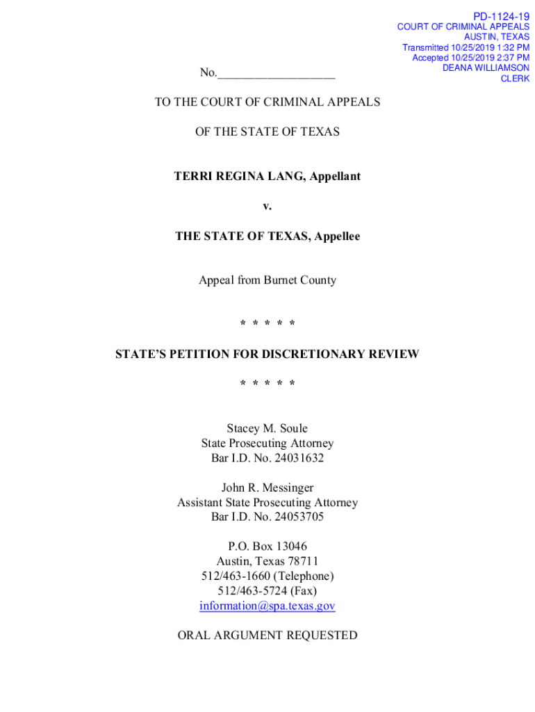 Get the free TO THE COURT OF CRIMINAL APPEALS ...
