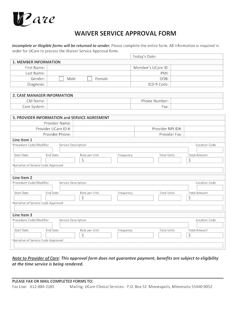 After completing the Waiver Service Approval Form, it must be faxed or mailed to UCare Clinical Services in Minnesota for processing.