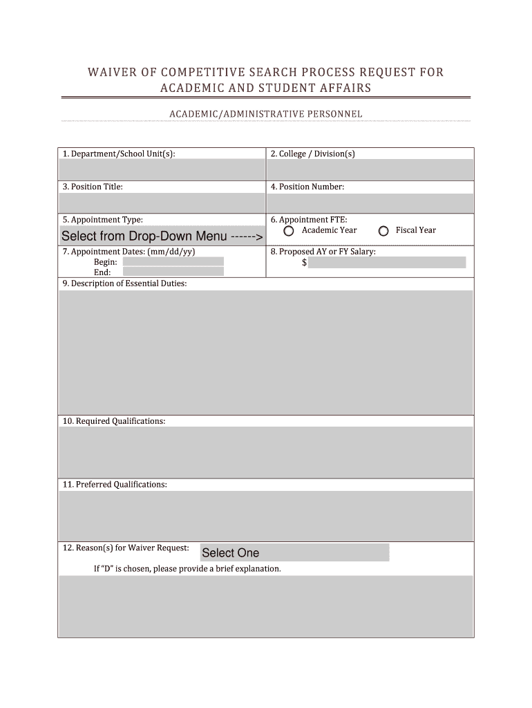 How to fill out Waiver of Competitive Search Process for Academic/Admin Personnel?