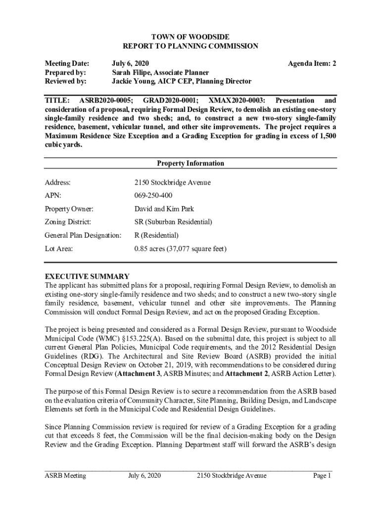 TOWN OF WOODSIDE REPORT TO PLANNING COMMISSION Meeting Date: Prepared by: Reviewed by:July 6, 2020, Sarah Filipe, Associate Planner Jackie Young, ICP CEP, Planning DirectorAgenda Item: 2TITLE: ASRB20200005;