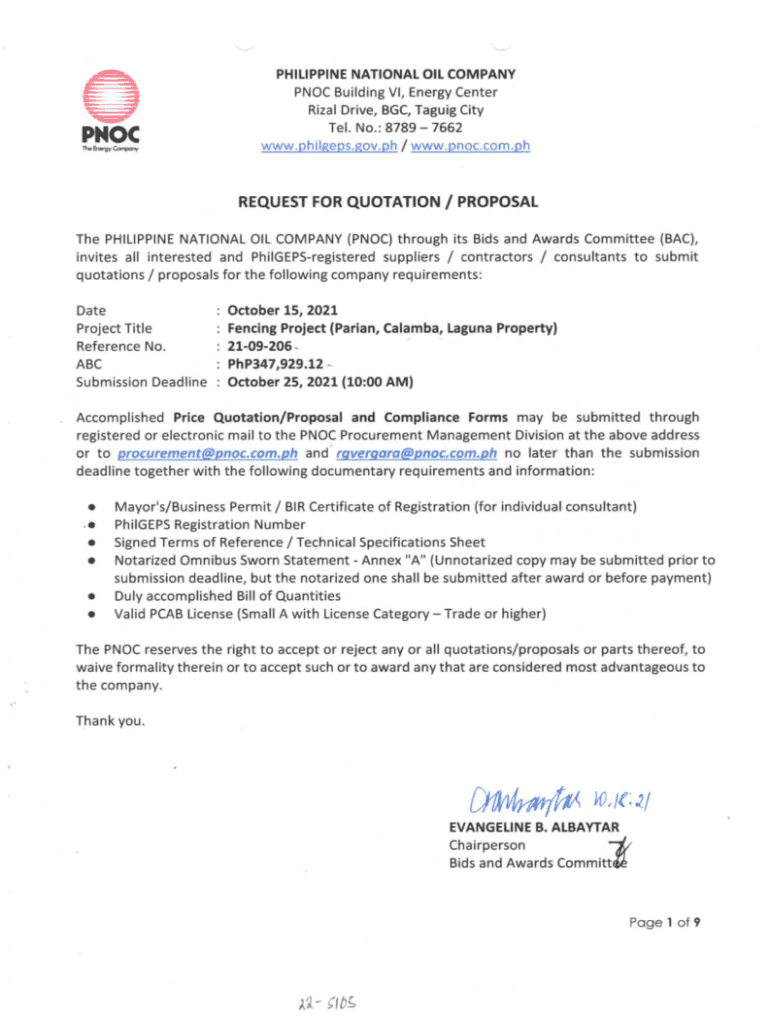 Any individual or company seeking to provide goods or services at a certain price may be required to file a price quotation proposal.