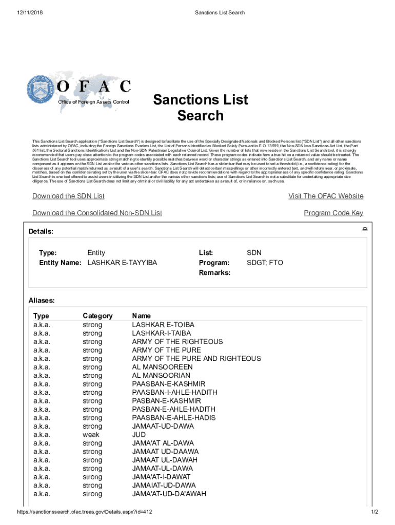 12/11/2018Sanctions List SearchSanctions List Search This Sanctions List Search application (\” Sanctions List Search\”) is designed to facilitate the use of the Specially Designated Nationals