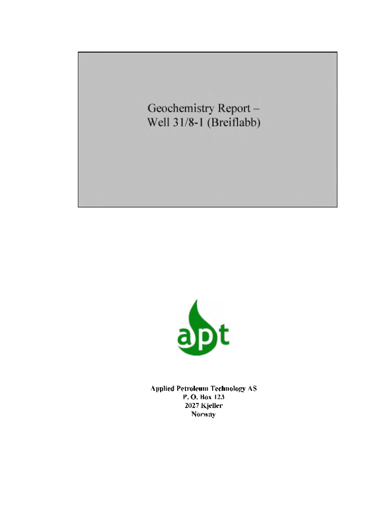 Get the free Geochemistry Report - W ell 31/8-1 (Breiflabb)