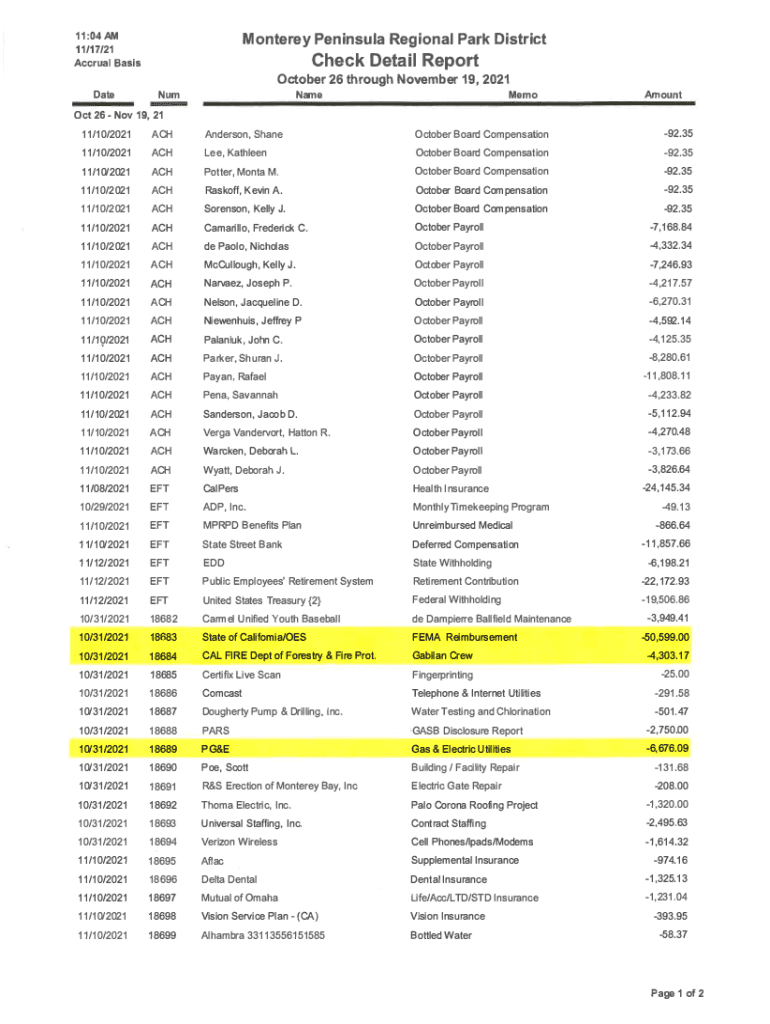 Hatcheck Detail Report October 26 through November 19, 2021,