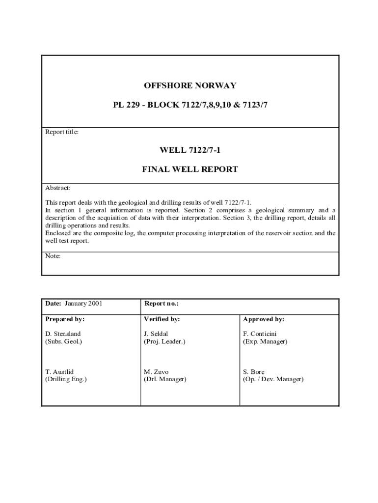 OFFSHORE NORWAY PL 229 BLOCK 7122/7,8,9,10 & 7123/7 Report title:WELL 7122/71 FINAL WELL REPORT Abstract: This report deals with the geological and drilling results of well 7122/71. In section 1 general