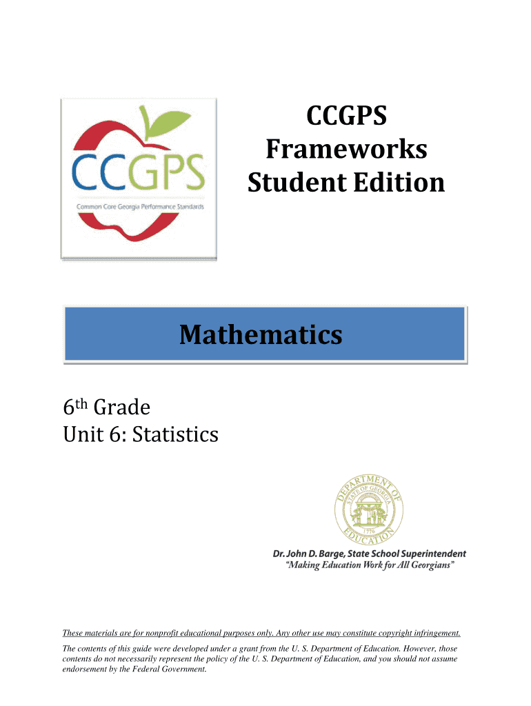 CC GPS Frameworks Student Edition Mathematics 6th Grade Unit 6: Statistics These materials are for nonprofit educational purposes only. Any other use may constitute copyright infringement. The contents