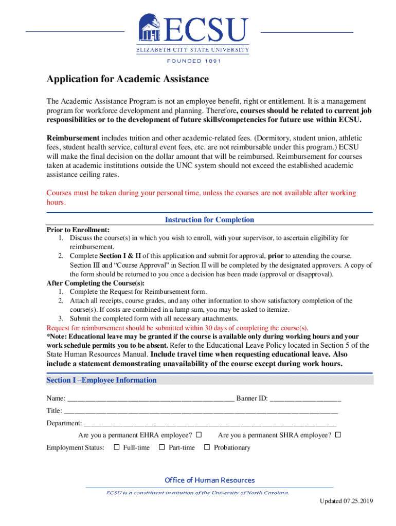 Get the free Application for Academic Assistance