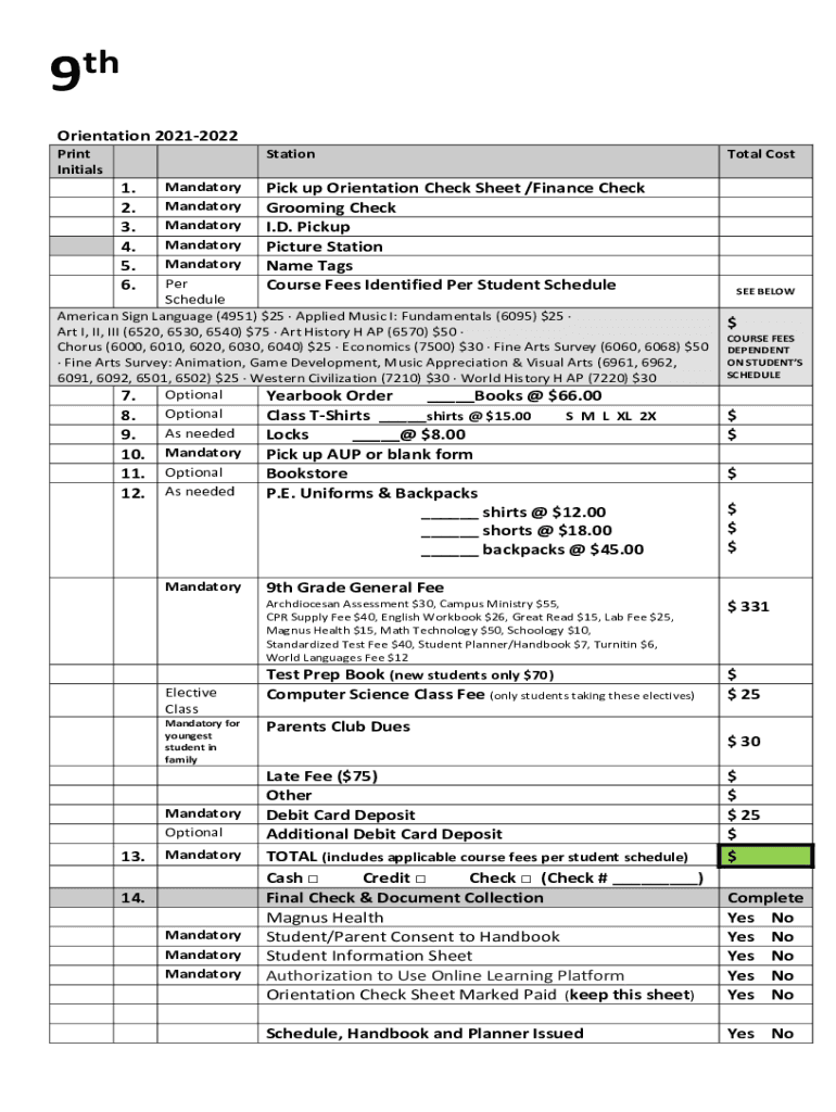 9thOrientation 20212022 Print InitialsStationTotal Commendatory Pick up Orientation Check Sheet /Finance Check Mandatory Grooming Check Mandatory I.D. Pickup Mandatory Picture Station Mandatory Name