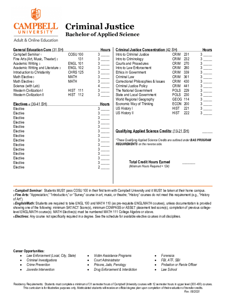 Criminal Justice Bachelor of Applied Science General Education Core (31 SH) Campbell Seminar 1 Fine Arts (Art, Music, Theater) 2 Academic Writing 3 Academic Writing and Literature 3 Introduction to
