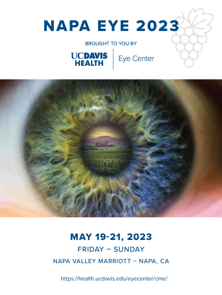 N APA E Y E 2 0 2 3 BROUGHT TO YOU BYWAY 1921, 2023 FRIDAY SUNDAYNAPA VALLEY MARRIOTT NAPA, CA https://health.ucdavis.edu/eyecenter/cme/NA PA E YE 2 0 2 3FRIDAY, MAY 19, 2023 12:00 registration (lunch