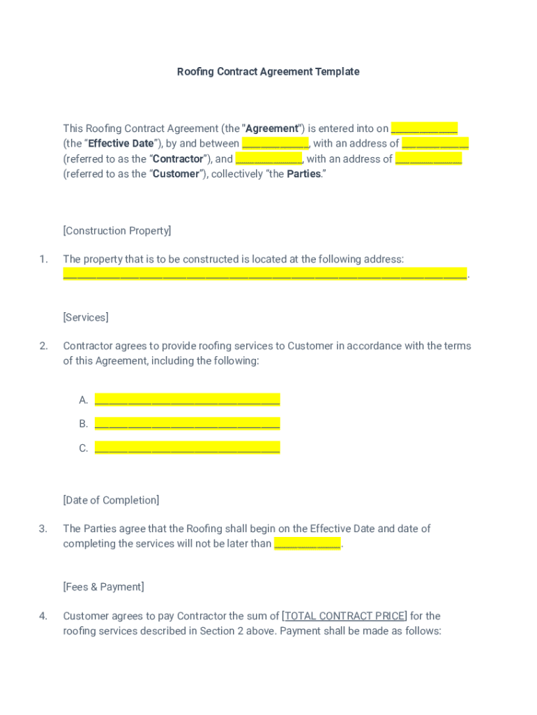 How to fill out roofing contract agreement template